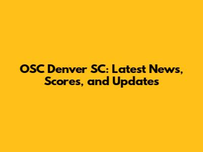 OSC Denver SC: Latest News, Scores, And Updates
