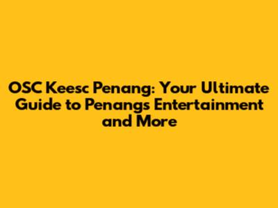 OSC Keesc Penang: Your Ultimate Guide