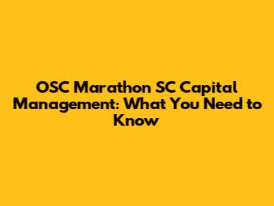OSC Marathon SC Capital: What You Need To Know