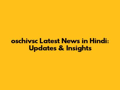 Oschivsc Latest News In Hindi: Updates & Insights