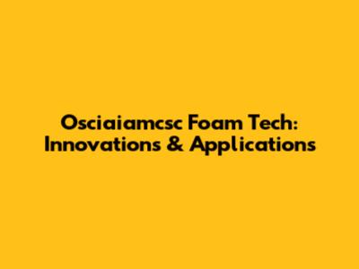 Osciaiamcsc Foam Tech: Innovations & Applications
