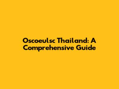 Oscoeulsc Thailand: A Comprehensive Guide