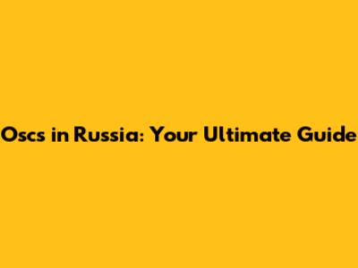 Oscs In Russia: Your Ultimate Guide