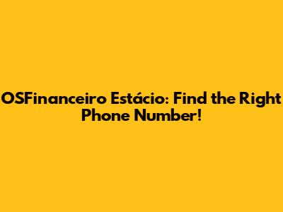 OSFinanceiro Estácio: Find The Right Phone Number!