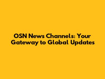 OSN News Channels: Your Gateway To Global Updates