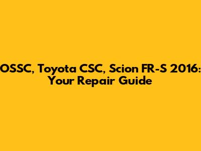 OSSC, Toyota CSC, Scion FR-S 2016: Repair Guide