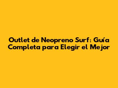 Outlet De Neopreno Surf: Guía Completa Para Elegir El Mejor