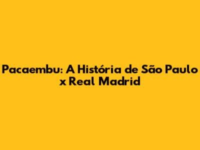 Pacaembu: A História De São Paulo X Real Madrid