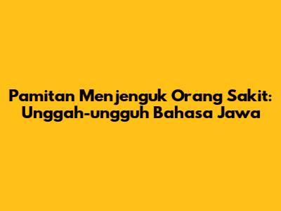 Pamitan Menjenguk Orang Sakit: Unggah-ungguh Bahasa Jawa