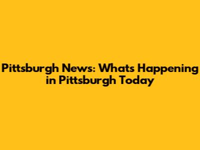 Pittsburgh News: What's Happening In Pittsburgh Today