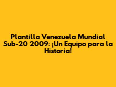 Plantilla Venezuela Mundial Sub-20 2009: ¡Un Equipo Para La Historia!