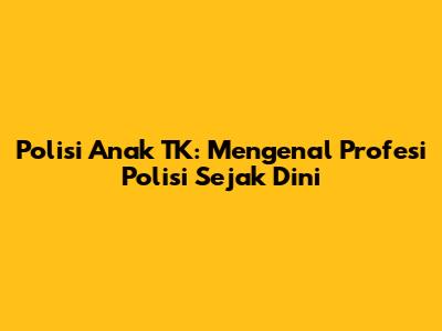 Polisi Anak TK adalah program pengenalan profesi kepolisian yang dirancang khusus untuk anak-anak usia prasekolah. Program ini bertujuan untuk mendekatkan形象 polisi kepada anak-anak agar mereka tidak merasa takut atau cemas ketika berinteraksi dengan polisi di kemudian hari. Melalui kegiatan yang menyenangkan dan interaktif, anak-anak diajarkan tentang tugas-tugas polisi, seperti menjaga keamanan, membantu masyarakat, dan menegakkan hukum. Program ini biasanya melibatkan kunjungan polisi ke sekolah TK, demonstrasi sederhana mengenai tugas-tugas kepolisian, serta kegiatan bermain peran di mana anak-anak dapat berpura-pura menjadi polisi.