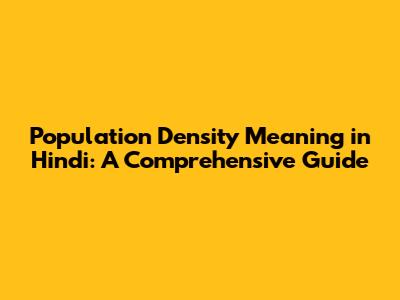 Population Density In Hindi: Simple Guide