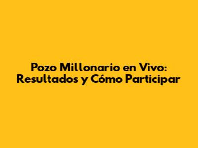 Pozo Millonario En Vivo: Resultados Y Cómo Participar