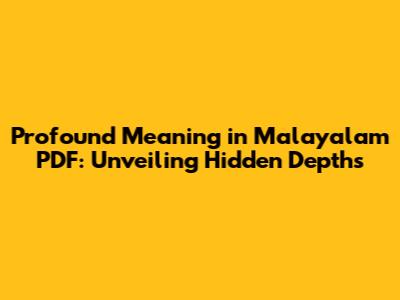 Profound Meaning In Malayalam PDF: Unveiling Hidden Depths