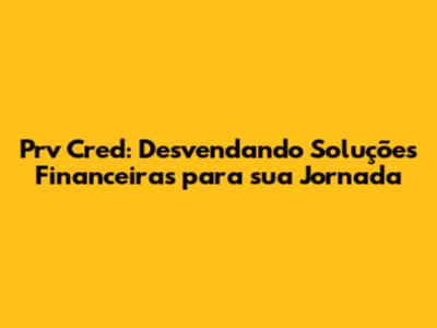 Prv Cred: Soluções Financeiras Para Você