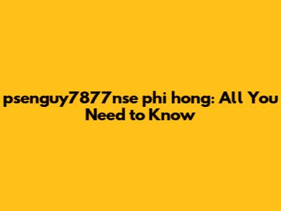 Psenguy7877nse Phi Hong: All You Need To Know