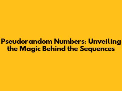 Hey guys, have you ever wondered how computers manage to generate random-looking numbers? You know, the kind you see in video games, simulations, or even in cryptography? Well, the answer lies in the fascinating world of pseudorandom numbers. They're not truly random, but they're designed to appear random enough for a wide range of applications. Let's dive in and explore the ins and outs of these clever sequences and see what makes them tick. We'll cover everything from the basics to some of the really cool things you can do with them. So, buckle up, and let's unravel the secrets of pseudorandom numbers! Understanding pseudorandom number generators is fundamental to grasp various concepts in computer science, simulations, and data analysis.