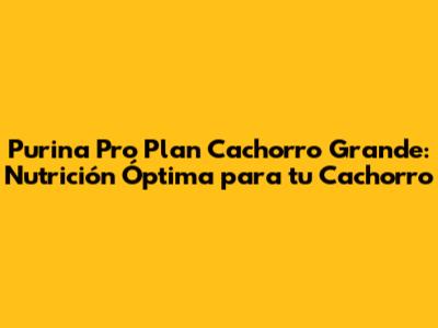 • ¿Dónde puedo comprar Purina Pro Plan Cachorro Grande? Puedes encontrar este alimento en tiendas de mascotas, veterinarias y en línea. Busca siempre proveedores confiables para asegurar la calidad del producto.