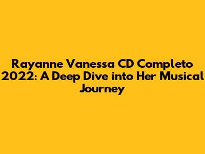Hey guys! Are you ready to dive into the mesmerizing world of Rayanne Vanessa's music? In this article, we're going to explore her completo CD from 2022, dissecting what makes it so special and why it’s a must-listen for any music lover. Rayanne Vanessa has carved a niche for herself with her unique sound, blending various genres to create something truly captivating. The Rayanne Vanessa CD Completo 2022 isn't just an album; it's a journey through emotions, stories, and musical landscapes that will leave you wanting more. So, buckle up, and let's get started!