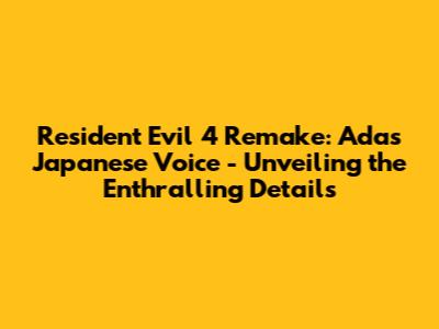 Hey there, fellow gamers! If you're anything like me, you're absolutely hyped about the Resident Evil 4 Remake. This isn't just any remake, guys; it's a complete reimagining of a classic, and the anticipation is REAL. One of the things that adds so much depth to the Resident Evil universe is the incredible voice acting, and let's be honest, Ada Wong is a total icon. So, what about Ada's Japanese voice in the Resident Evil 4 Remake? That's what we're diving into today! We're gonna explore the amazing voice actresses behind Ada, why the Japanese voice acting is so important to many fans, and where you can experience it for yourself. Trust me, it's gonna be a fun ride!