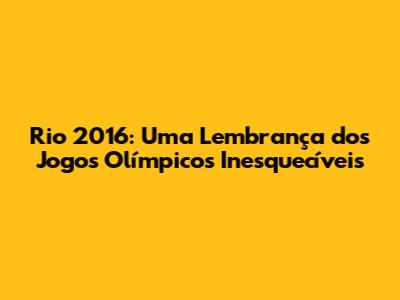 Rio 2016: Uma Lembrança Dos Jogos Olímpicos Inesquecíveis