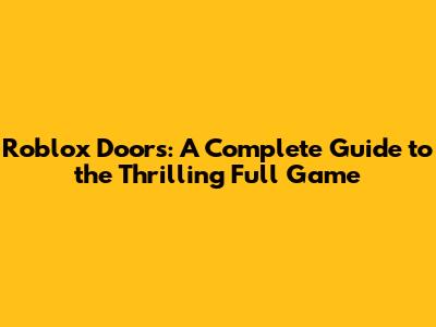Roblox Doors: A Complete Guide To The Thrilling Full Game