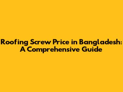 Roofing Screw Price In Bangladesh: A Comprehensive Guide
