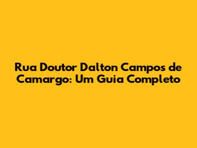 Rua Doutor Dalton Campos De Camargo: Um Guia Completo