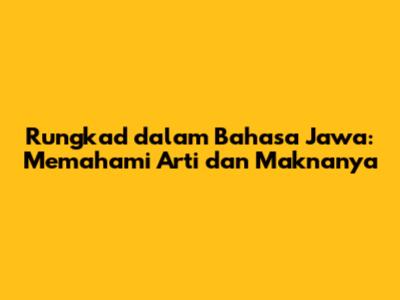 Rungkad Dalam Bahasa Jawa: Arti, Makna, Dan Penggunaannya