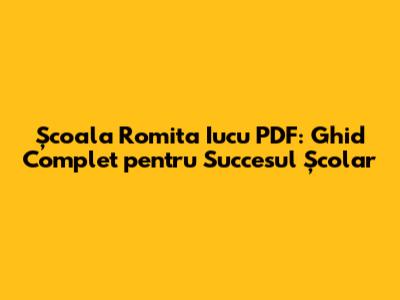 Școala Romita Iucu PDF: Ghid Complet Pentru Succesul Școlar