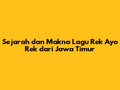 Lagu "Rek Ayo Rek" adalah salah satu lagu daerah yang sangat populer dan ikonik dari Jawa Timur, Indonesia. Lagu ini tidak hanya sekadar nyanyian, tetapi juga cerminan dari semangat persahabatan, kegembiraan, dan kebersamaan masyarakat Jawa Timur. Dalam artikel ini, kita akan menyelami lebih dalam tentang sejarah, makna, dan popularitas lagu "Rek Ayo Rek" yang hingga kini masih terus dinyanyikan dan dicintai oleh berbagai kalangan.