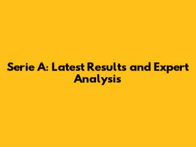 Serie A: Latest Results And Expert Analysis