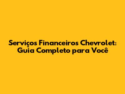 O Que São os Serviços Financeiros Chevrolet?