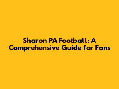 Sharon PA Football: A Comprehensive Guide For Fans