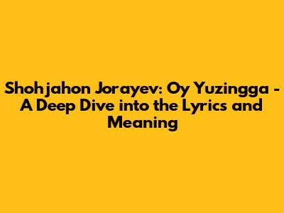 Hey music lovers! Today, we're diving deep into a track that's been making waves and capturing hearts: Shohjahon Jo'rayev's "Oy Yuzingga." If you've heard this song, you know it's got that special something that stays with you. But what's it all about? Let's break down the lyrics, explore the emotions, and figure out why this song is such a hit. We're going to go beyond just the melody and really get into the soul of "Oy Yuzingga," guys. So grab your headphones, and let's get started on this lyrical journey!