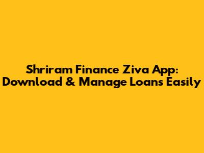 Shriram Finance Ziva App: Download & Manage Loans Easily