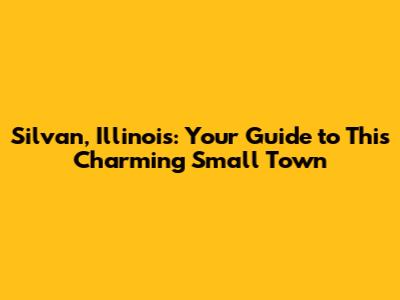Hey guys! Ever heard of Silvan, Illinois? Probably not, right? It's one of those super charming small towns that often gets overlooked, but it's totally worth exploring. Let's dive into everything that makes Silvan special, from its history and local attractions to the community vibe and why you might just fall in love with it.