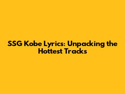 SSG Kobe Lyrics: Unpacking The Hottest Tracks