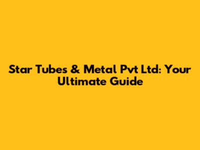 Star Tubes & Metal Pvt Ltd: Your Ultimate Guide