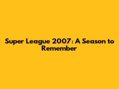 The Super League 2007: A Rugby League Rollercoaster