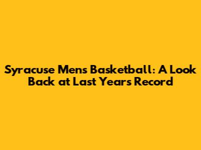 Syracuse Basketball Record Last Year: Performance & Stats