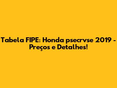Tabela FIPE: Honda Psecrvse 2019 - Preços E Detalhes!