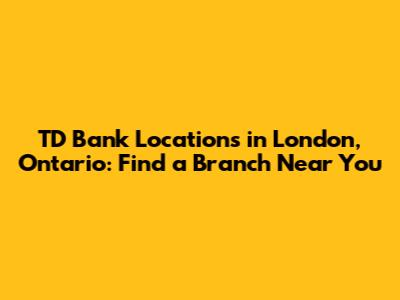 Key TD Bank Locations in London, Ontario