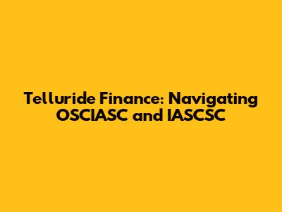 Telluride Finance: OSCIASC, IASCSC Insights