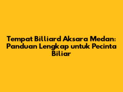 Beberapa tempat billiard di Aksara Medan yang populer dan sering dikunjungi oleh para penggemar biliar antara lain: (Karena saya tidak memiliki informasi real-time tentang tempat-tempat biliar tertentu, informasi ini bersifat umum dan contoh). Pastikan untuk melakukan riset lebih lanjut untuk menemukan tempat yang paling sesuai dengan kebutuhan Anda.