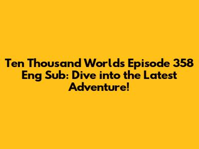 Hey guys! Ready for another thrilling installment of Ten Thousand Worlds? Episode 358 is finally here, and it's packed with action, suspense, and all the elements that make this series so captivating. If you've been eagerly waiting to find out what happens next, you're in the right place. Let's dive into what makes this episode a must-watch and where you can catch it with English subtitles.
