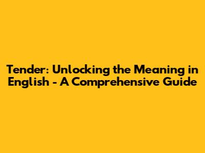Tender: Unlocking The Meaning In English - A Comprehensive Guide