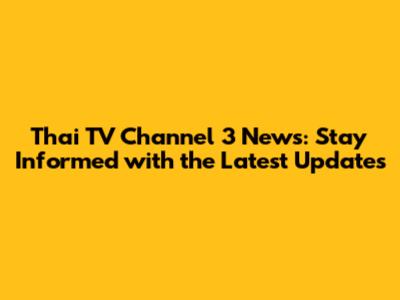 Thai TV Channel 3 News: Latest Updates