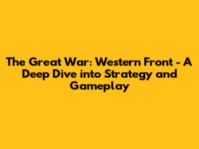 The Great War: Western Front - Strategy & Gameplay Guide